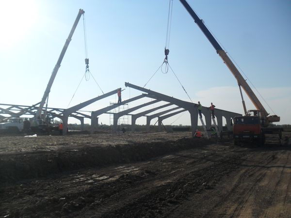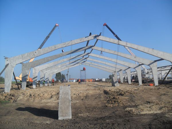 Многие сельскохозяйственные здания возводят полносборными с несущими железобетонными или смешанными стоечно-балочными или рамными конструкциями.