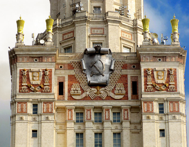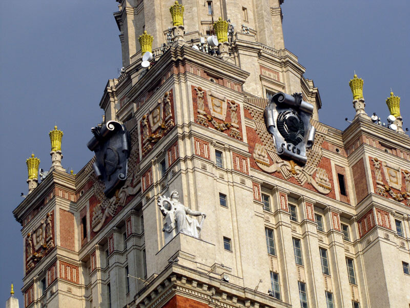 Главное Здание МГУ – один из самых могучих Символов Москвы и России! Построено оно было, как и весь ленинско-горский кампус, в непростое, но Легендарное теперь уже Время Великих Свершений. Помимо того, что здание само по себе замечательно и является выдающимся достижением мировой и советской архитектуры, если можно так сказать, в реальном аспекте, ГЗ наше к тому же еще - -одно из самых главных и мифологизированных Культовых Мест России, окутанное слегка пугающе-мрачноватым, но притягательным сонмом Легенд и Мифов.