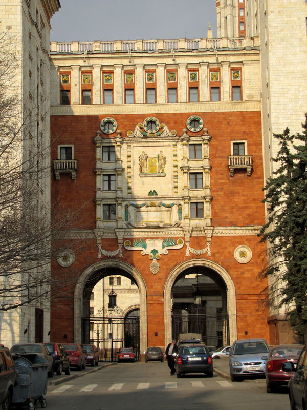 Как известно, основан МГУ был в 1755 году Елизаветой Петровной по предложению Ломоносова и Шувалова. В общем-то, по европейским меркам возраст весьма скромный. Однако всё же МГУ - главный вуз России, и традиционно был одним из ведущих университетов мира. В последние десятилетия МГУ, как и вся наша наука, сильно сдал позиции - но думаю, это не навсегда.Изначально университет располагался на Моховой, прямо около кремля, в барочном здании, отчасти похожем на петровские палаты - но оно не сохранилось. Часть построек МГУ по-прежнему находится там (в том числе Университетская церковь Святой Татьяны - основан МГУ был в Татьянин день, после чего Татьяна стала покровительницей русских студентов).