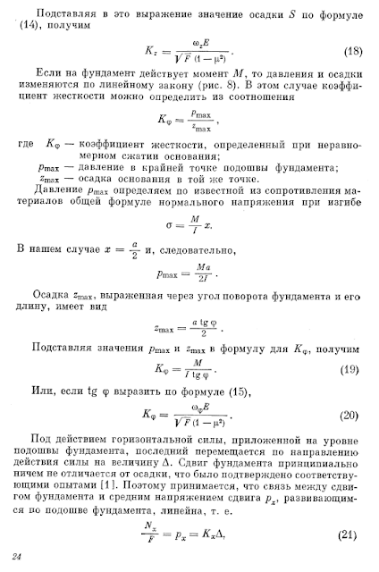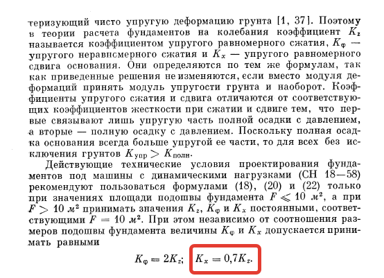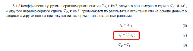 Выдержка из книги проф. Клепикова С.Н. где можно увидеть формулы расчета коэффициента жесткости грунта на сдвиг.