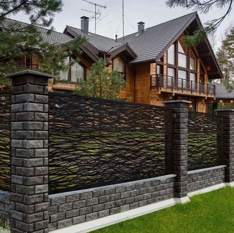 Это основная функция забора из металлопрофиля (профилированного листа) или панельного ограждения из сварной сетки. Но современный металлический забор для дачи, коттеджа или участка, как правило, устанавливается с оглядкой на «внешность» дома, ландшафтный дизайн и другие детали, которые в итоге и создают то, что принято называть индивидуальным стилем.