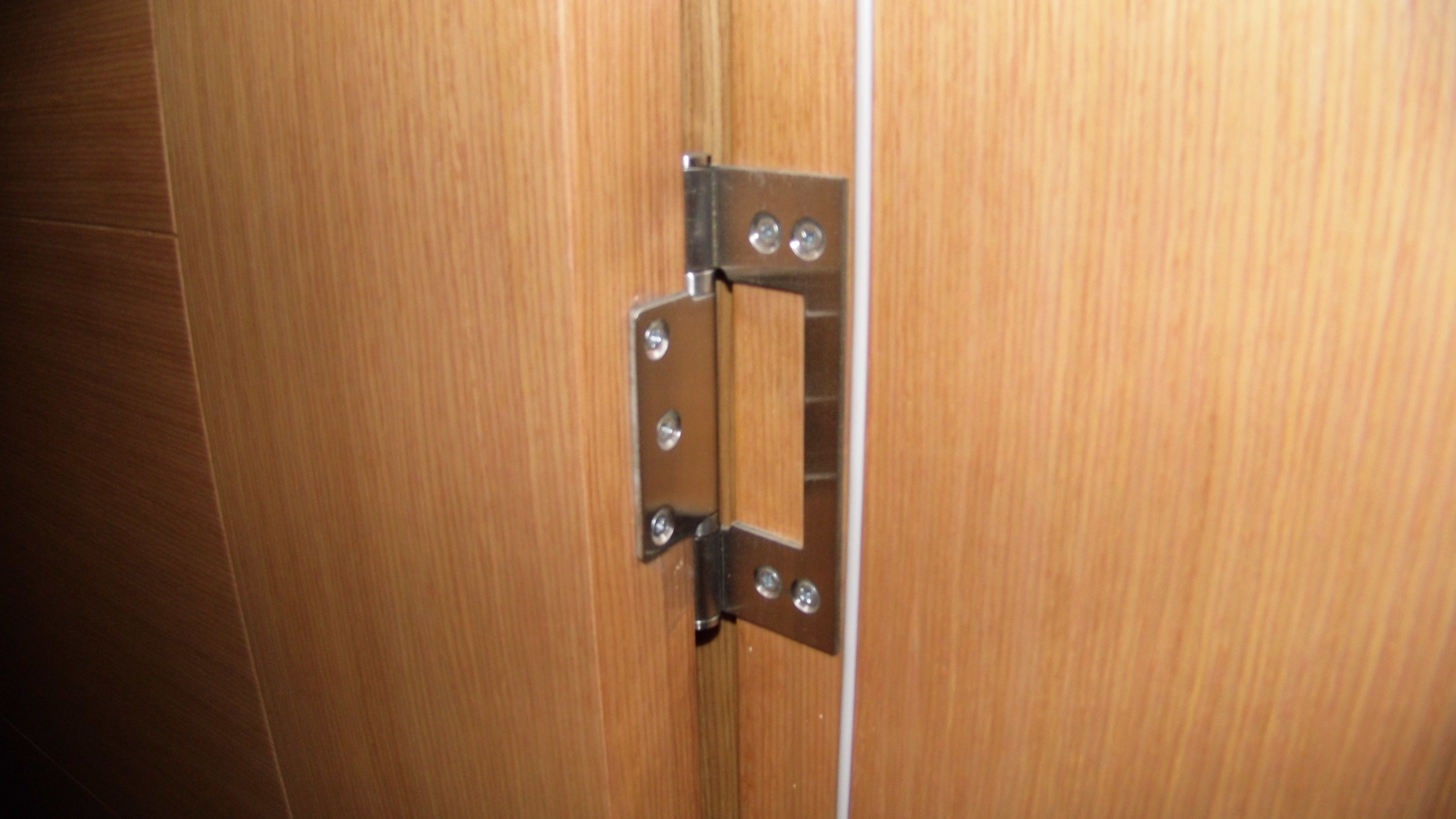 Петли-бабочки состоят из двух частей. Во время их складывания меньшая часть вкладывается в большую. Поэтому монтаж петель типа «бабочка» на межкомнатные двери не требует оснащения паза. Крепятся навесы с помощью метизов и для этого не требуется использования каких-либо профессиональных инструментов.