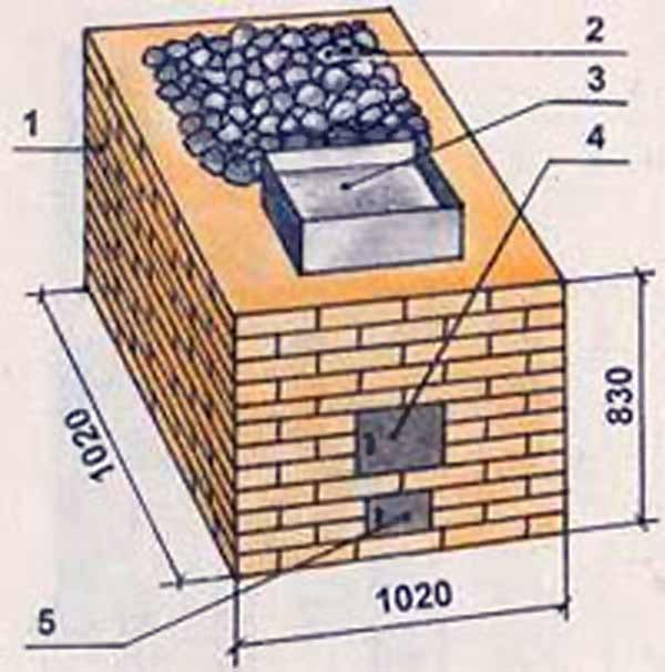 Схема закрытой печи-каменки из кирпича: