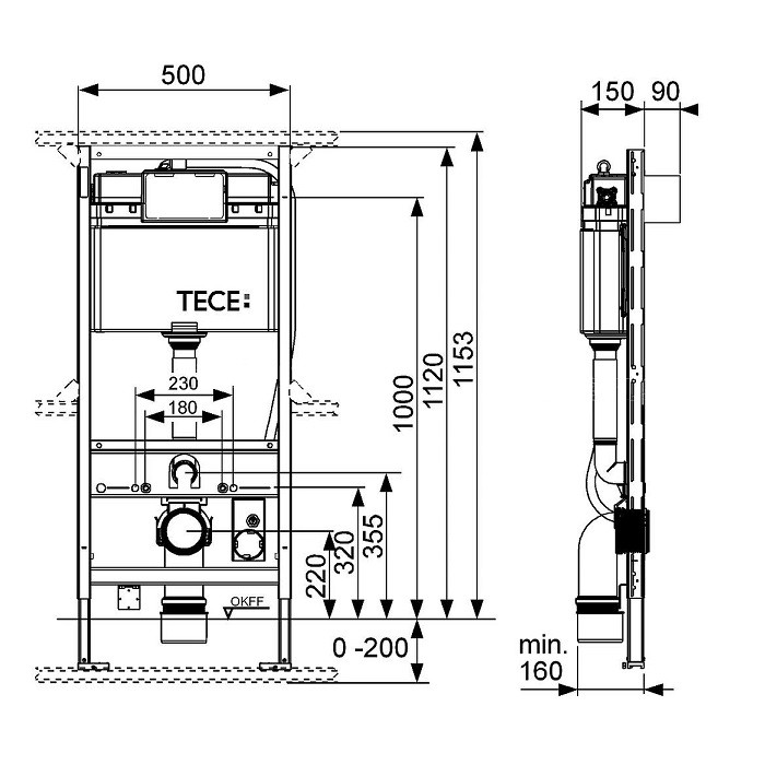 Удобство рамных инсталляций заключается в возможности регулирования высоты установки. При помощи ножек можно выбрать высоту до 20 сантиметров от уровня пола.