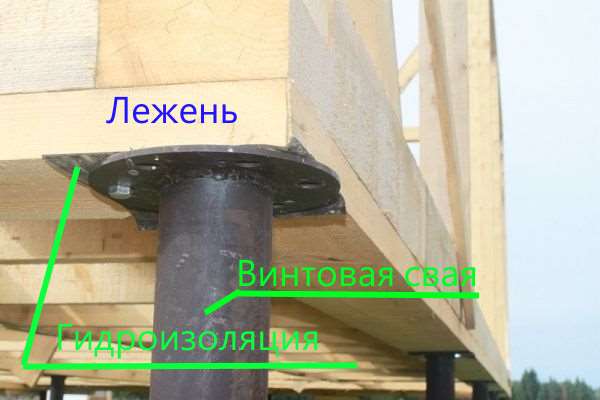 - Между оголовками и обвязкой устраивают гидроизоляционный слой.