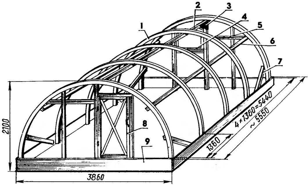 - продольную ось двускатной или арочной конструкции направляют с севера на юг.