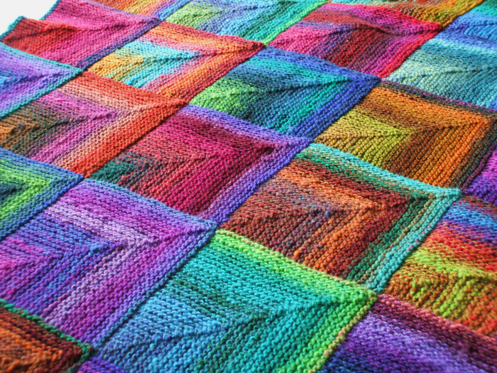 Первоначально опубликованный в журнале по вязанию Дебби Блисс в 2009 году, этот узор лоскутного одеяла вяжется плоской лицевой гладью с использованием хлопчатобумажной пряжи и двух прямых спиц.