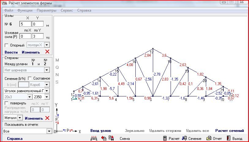 Давно знаю про это место, соблазн выложить на обозрение сходил на нет из за результатов по сечениям. Если по резульиату сварить ферму из того что предлагает калькулятор — выйдет жуткий дикобраз! При попытке свести все к одному, даже большему, сечению допуски улетают за нормы. Че то они там не додумали.