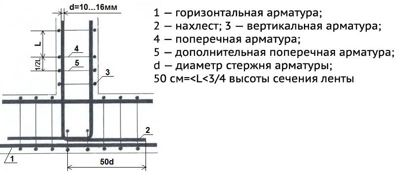 - Максимальный промежуток между двумя продольными прутьями – 40 см. Выполнение этого условия подразумевает закладку дополнительного стержня при превышении ширины ленты свыше 50 см.