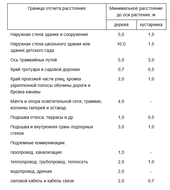 Расстояние, на котором можно высаживать деревья на участке, регулируется: