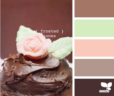 Сочетание розового и шоколадного можно назвать сладкой парочкой, где розовый цвет ассоциируется с ягодным кремом, мороженным, суфле и др. В гамме предпочтительны светлые, нежные, теплые оттенки розового, которые не только контрастируют с темным тоном, но и его значением. Например с розово-персиковым, сакурой, клубничным, закатным, кораллово-розовым.
