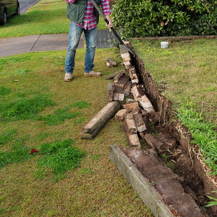 Для бревен выкапывается специальная траншея, глубиной не менее 40-60 см, в зависимости от высоты подпорной стенки. Такая глубина установки даст серьезную прочность стенке, но учесть стоит и слой дренажа и фундамента.