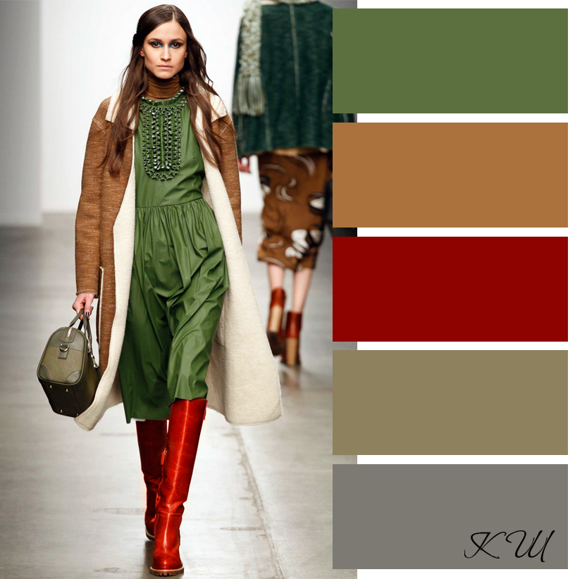 Холодные оттенки зелени как нельзя лучше будут контрастировать с теплой внешностью «осени», к тому же рыжие (как красно-оранжевые) тона дополнительные к сине-зеленым, что повышает выгодность контраста.