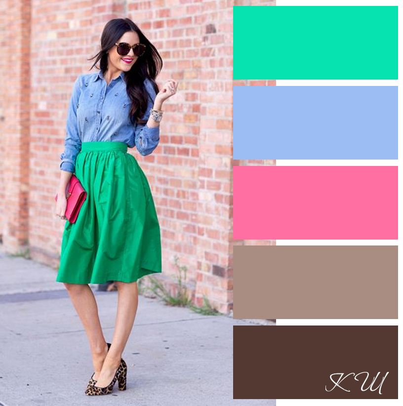 Сочетание зеленого цвета столь же непринужденны, как и его оттенки: он легко подстраивается под цвета спутники: расцветает вместе с яркими и теплыми оттенками, теряется между холодными, образуя глубину и объем, выходит на первый план с нейтральными тонами.
