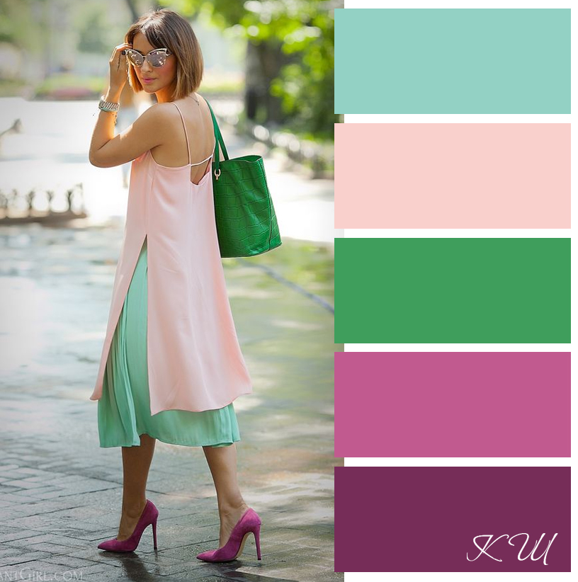 Холодный зеленый сочетается с розовым: бело-розовым, гвоздикой, закатным,
