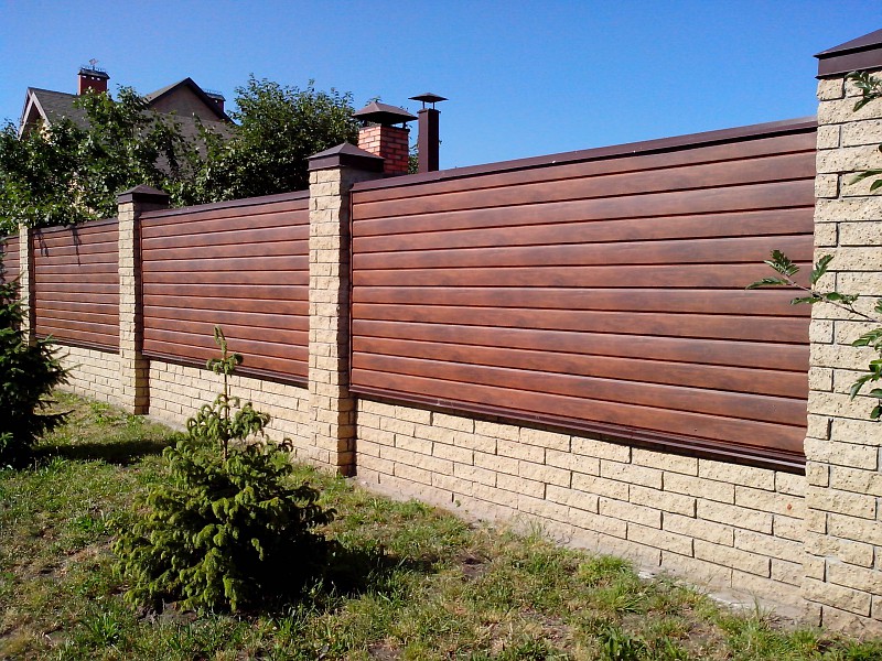 Металлический штакетник — аналог стандартного деревянного штакетника с гораздо более длительным сроком эксплуатации (около 50 лет). Может быть вертикальным или горизонтальным, главное, чтобы были характерные зазоры в несколько сантиметров.
