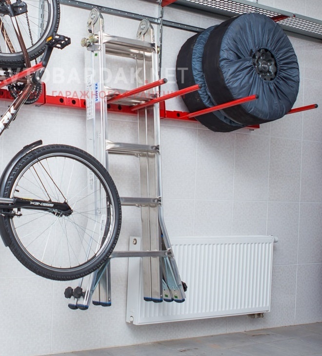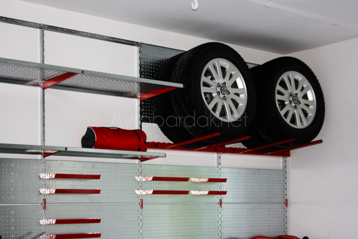 Благодаря вертикальному пространству гаража такие вещи, как дополнительные комплекты шин и другие предметы, не будут лежать на полу.
