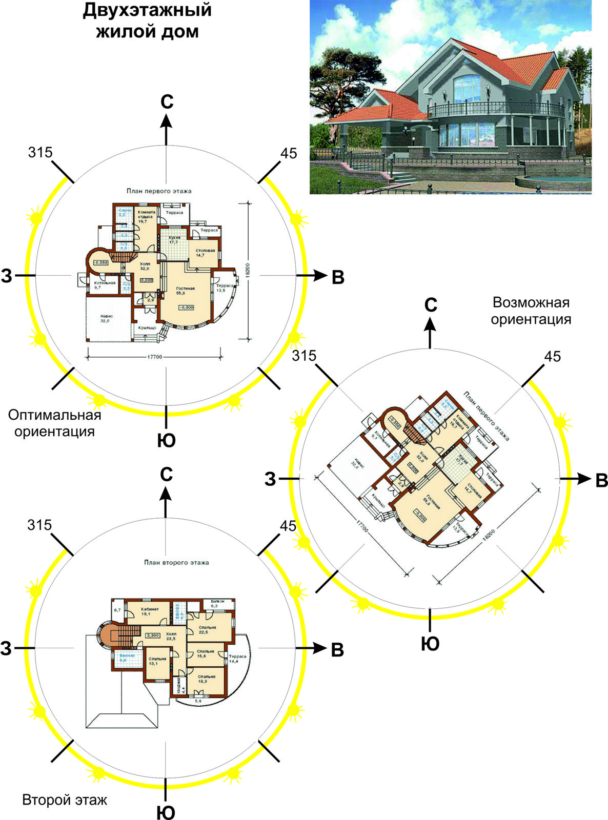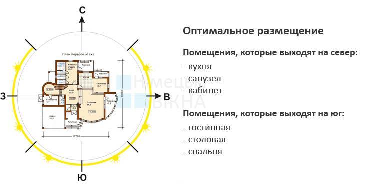 Об ориентировании дома по сторонам света стоит задуматься ещё на этапе проектирования. На первый взгляд это не кажется таким уж важным пунктом, но практика показывает, что заранее продуманное расположение дома позволяет упростить дальнейшее размещение комнат, сделать их более светлыми, а также сэкономить деньги на теплоизоляционных материалах, обогреве и кондиционировании дома.