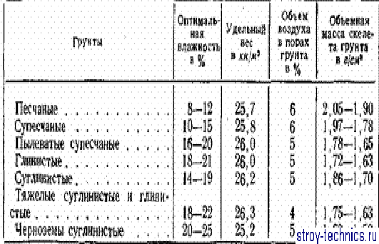 Ниже указана данная характеристика для разных типов почв. В таблице указаны средние показатели. Следует отметить, что вес одинаковых грунтов с разной пористостью может значительно отличаться.